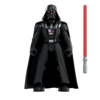 La figura de Darth Vader a escala de 2,5 pulgadas tiene 7 puntos de articulación, un sable de luz rojo y una capa de vinilo que se quita para que pueda sentarse dentro de la cabina del caza TIE.